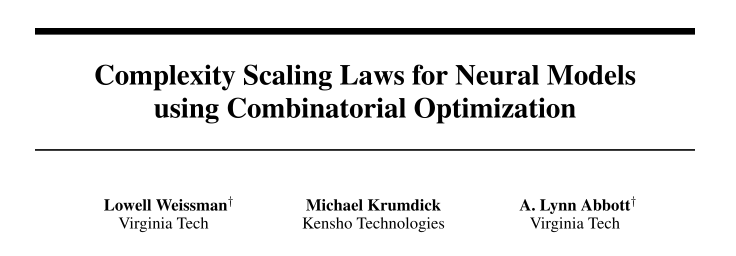 Complexity Scaling Laws for Neural Models using Combinatorial Optimization